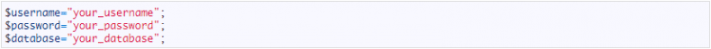 A good practice when using databases is to set the username, the password and the database name values at the beginning of the script code. If you need to change them later, this way you will be able to perform the change easily.