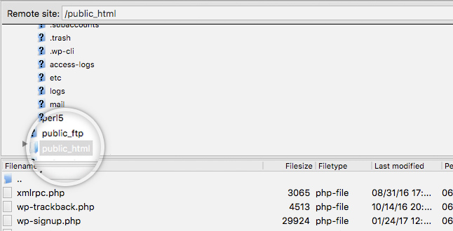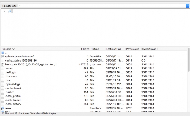 You will be connected to your hosting account and on the right side of the FTP client window you will see a list of all the files and folders on your account.