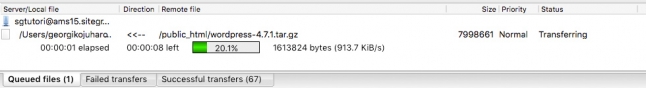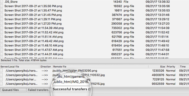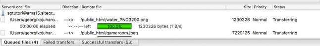 Wait for the upload to complete, after which the uploading of these files will be logged in the Successful Transfers tab at the bottom panel.
