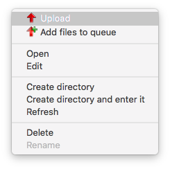 Then, select one or more files from the left side panel (your computer) to be uploaded and right click on them. From the menu that shows up, click the Upload button.