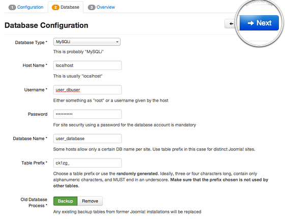 - Table Prefix: Joomla will add this prefix to all of its database tables. This is useful if you want to host multiple Joomla sites on a single database. You should leave the default value.