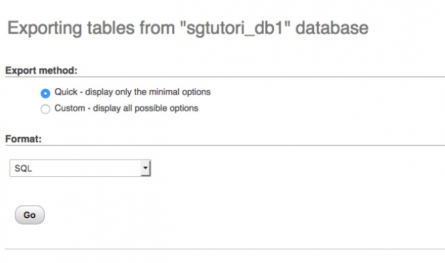 On the page that opens you can choose from using the Quick or Custom export methods. The Quick method is usually the preferred choice, but if you would like to customize the export process and output you can use the Custom one. Once you choose the appropriate method, select the desired format of the backup from the Format: drop-down and click the Go button.