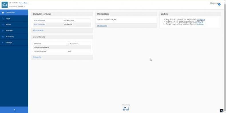 The fork is another basic CMS with a couple of handy extensions available. It has been around since 2010 and is still being actively maintained. If you;re looking for an easy CMS coupled with few useful extensions/themes, Fork might be right choice for you.