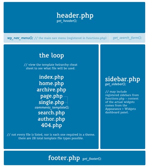 WordPress assembles pages in a modular way, with sidebars, footers, and headers existing as external files that are called and assembled into the finished page as it is requested. These files are called templates, and they are the building blocks of any WordPress site.