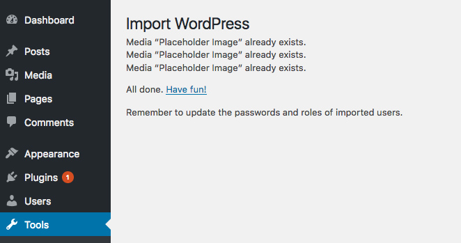 That’s it! Your data is now transferred from your WordPress.com account to your stand-alone WordPress application.