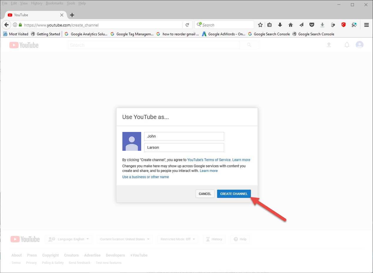 Before you can create a YouTube account, you must a have a Google Gmail account. If you don’t already have one, follow the one screen prompts and create that account first. Once completed, return here.