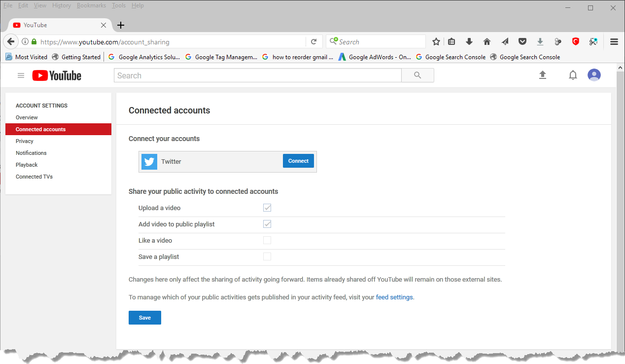 Google will allow you to connect your Twitter account to your YouTube account. Connecting the account will allow you to share data easier.
