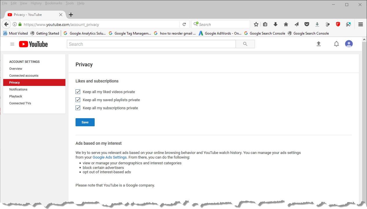 If you do not want people to know what types of videos you watch, you can add privacy restrictions to your data under the “Privacy” tab.