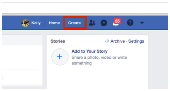 In the right-hand side of the blue toolbar, find and click the “Create” button.