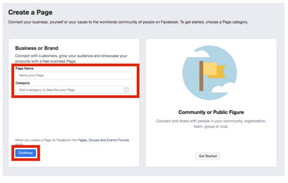 You will have the option between two page categories—a “Business or Brand” or “Community or Public Figure.” Most for-profit businesses will want to choose Business or Brand.