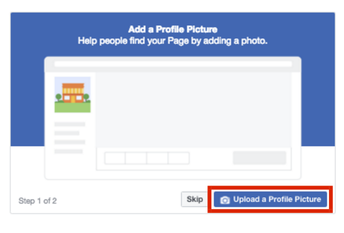 Next you’ll upload a profile picture. This will serve as the main visual icon of your page, appearing in search results and alongside any comments you publish. The recommended size is 180 x 180 pixels.
