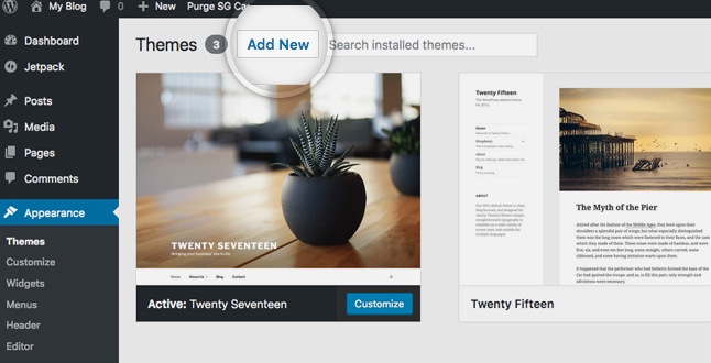 Here, you will see all the themes you have currently installed in your application. To add another one, simply click on the Add New button.