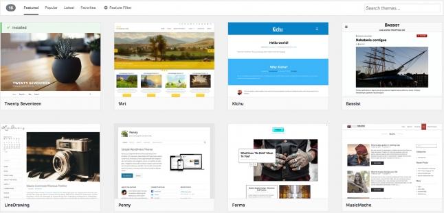 The easiest way to install themes to your WordPress site is if they are listed in the official themes directory. This allows you to search for the theme you need directly from your site admin page. Each theme in the official directory has to have Tags that describe its functionality allowing you to easily search for the right theme.