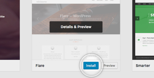 You will now see all themes that meet your search. Hover over any of them and you will see two options – to see a demo of the theme or to install it. Once you choose which theme you want to use for your site, press the blue Install button.