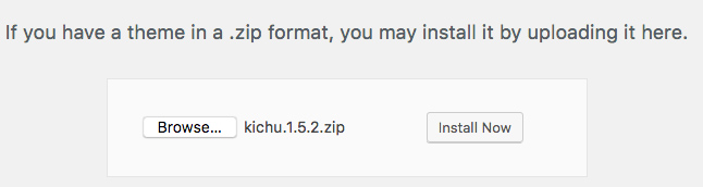 Now, click the Browse button, select the archive of your theme from your local computer and press the Install Now button.