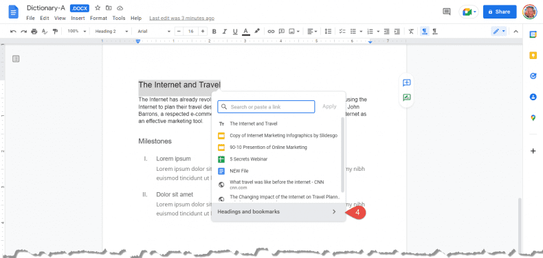A small pop-up appears. You can either add a link to an outside website, or link to a heading within the document.