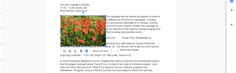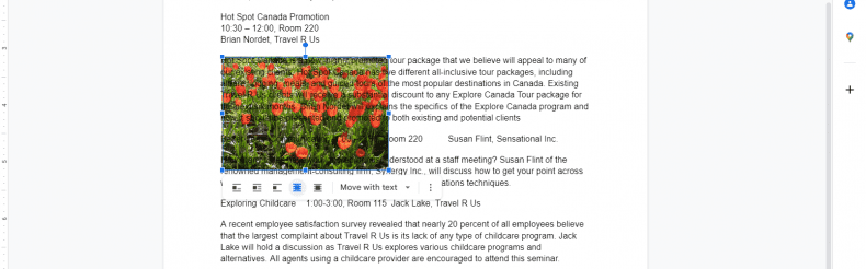 Break text: The image is placed in a separate row and the text continues on a new line below the image.