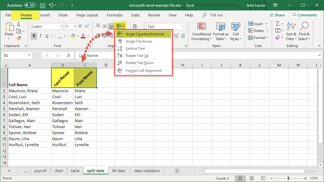 Align or Rotate Text in a Cell
