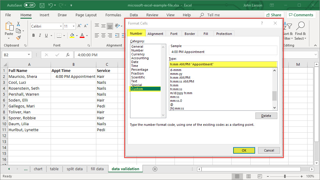 - Formatting attributes: Cells can contain formatting attributes that change the way letters, numbers, and dates are displayed. For example, dates can be formatted as MM/DD/YYYY or Month/D/YYYY.