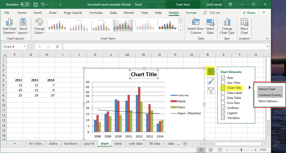 4. Select Centered Overlay to lay the title over the chart, or More Options for additional choices.