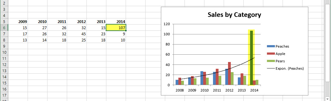 If you need to change data in a chart, you can do it from its source. As you make changes in your source data, you’ll see the changes reflected in the chart.