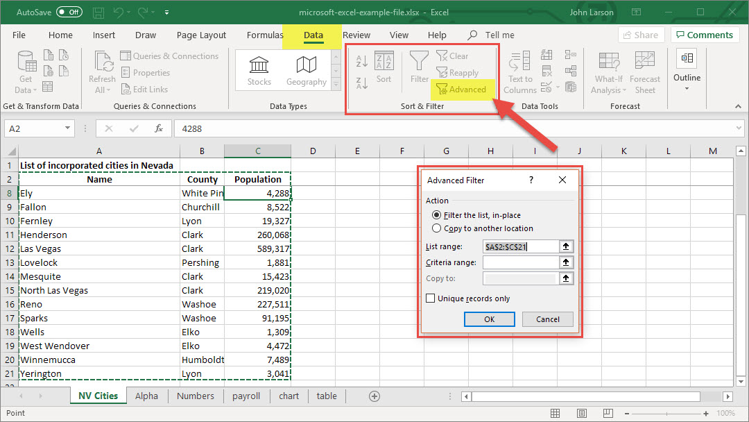 You can read more about advanced filtering from Microsoft in this article: Filter by using advanced criteria.