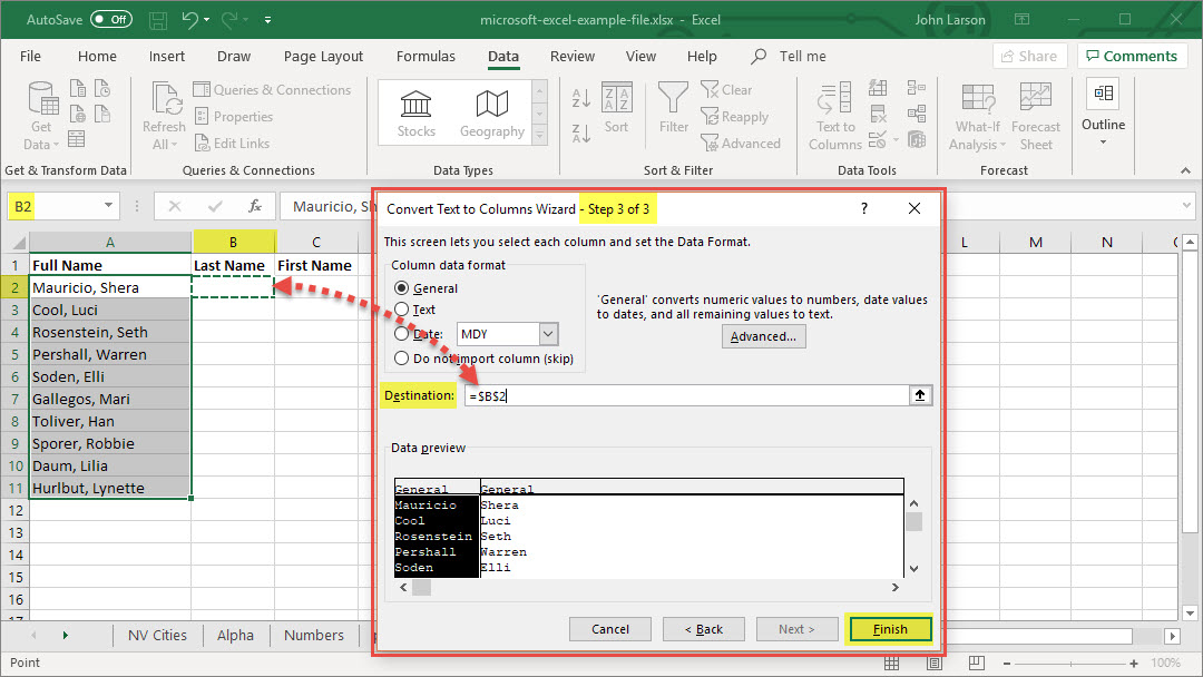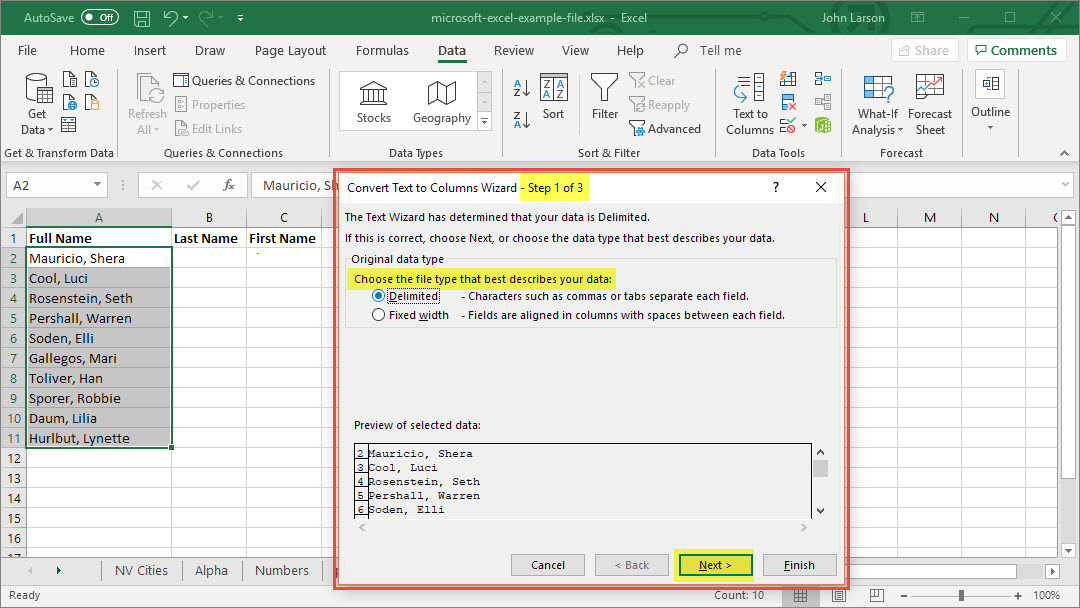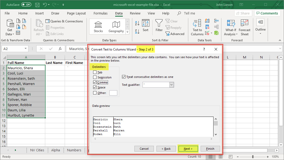 Convert Text to Columns Wizard