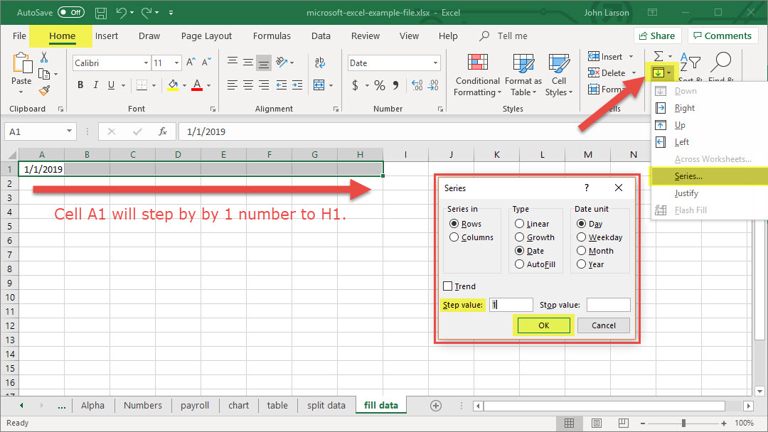 2. Select Home > Editing > Fill > Series > Date unit. Select the unit you want to use.