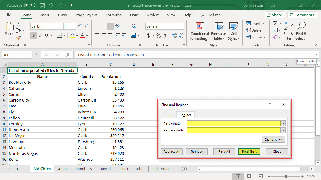 Find or Replace Text and Numbers