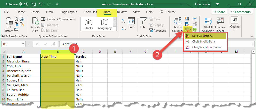 2. Select Data >Data Validation.