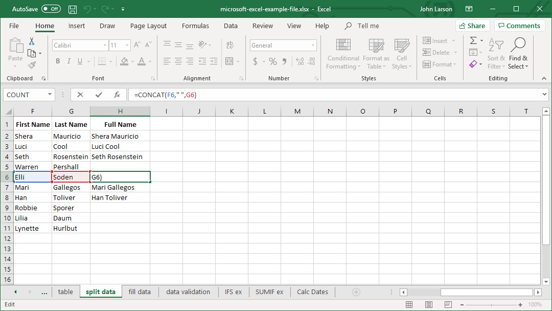 2. Combine data using the CONCAT function