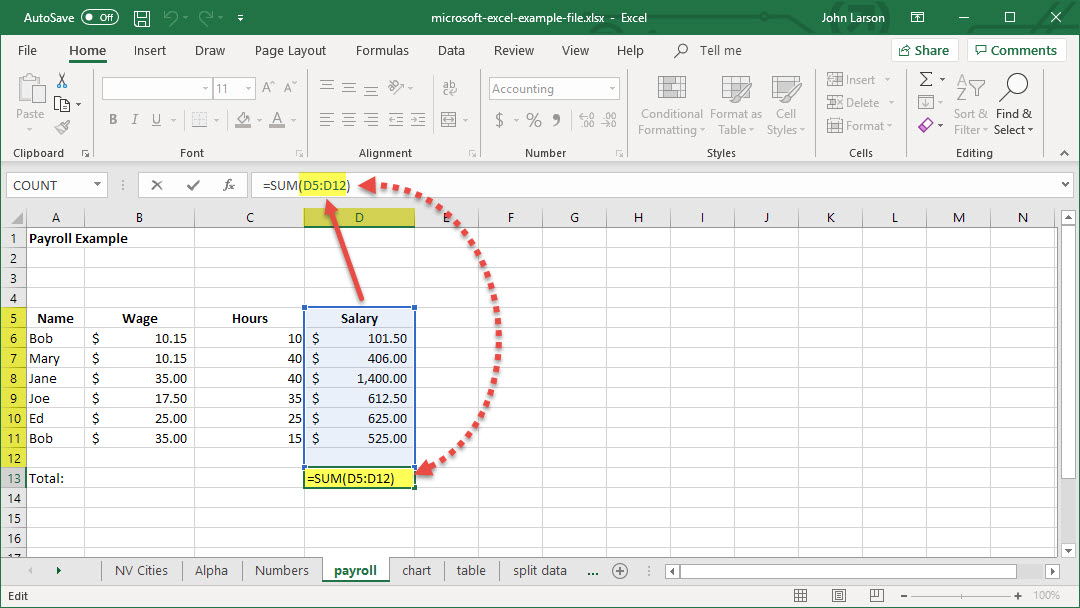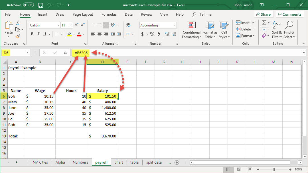 2. To see a formula, select a cell, and it will appear in the formula bar.