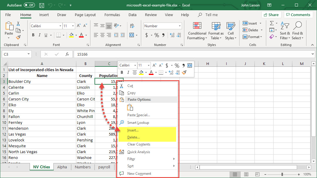 Insert and delete rows, columns, and cells to organize your worksheet better.