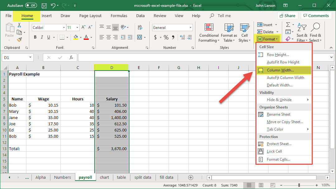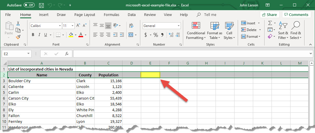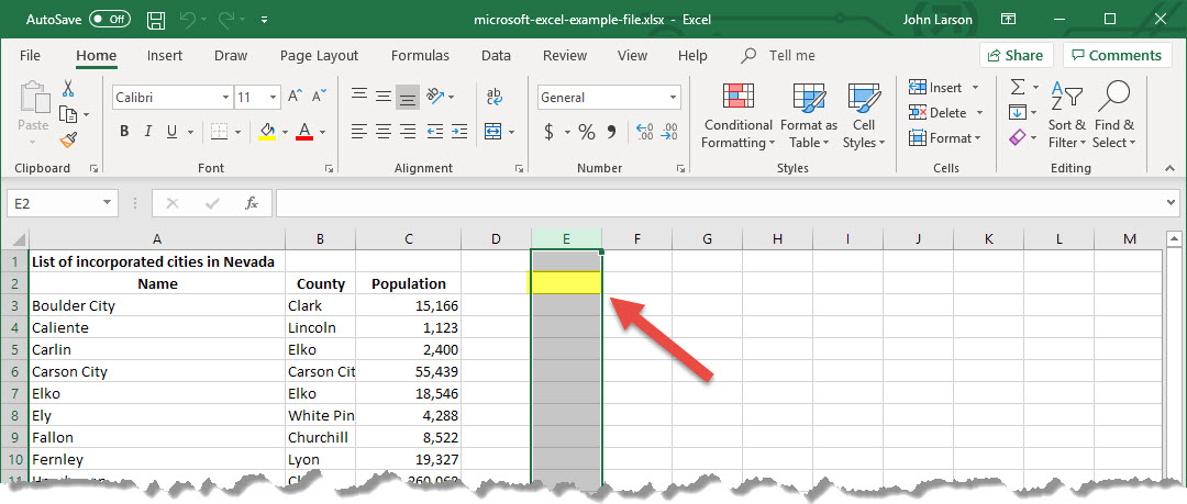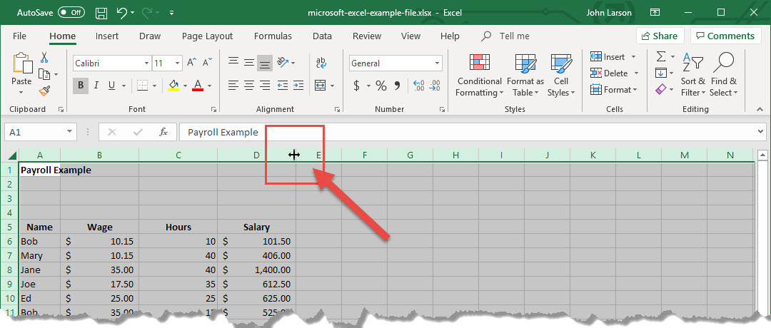 Note: The double line between two columns is an indicator that you’ve hidden a column.