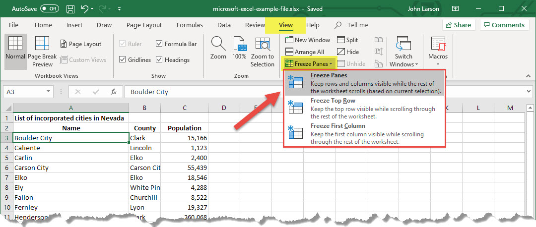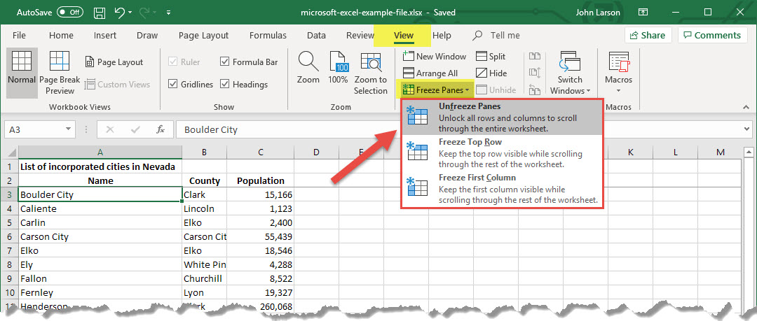 Note: If you don’t see the View tab, it’s likely that you are using Excel Starter. Not all features are supported in Excel Starter.