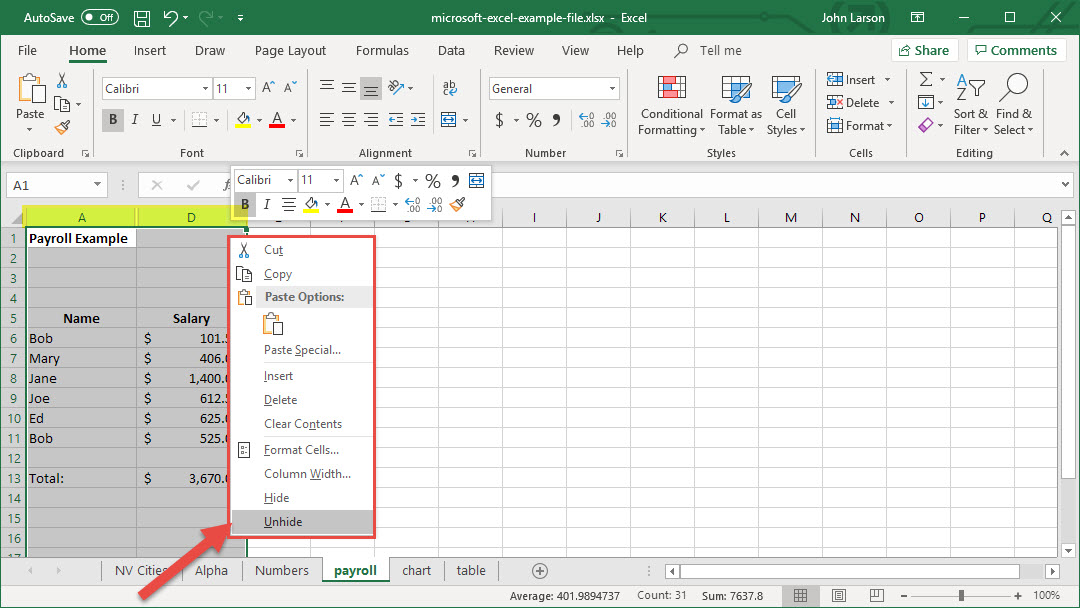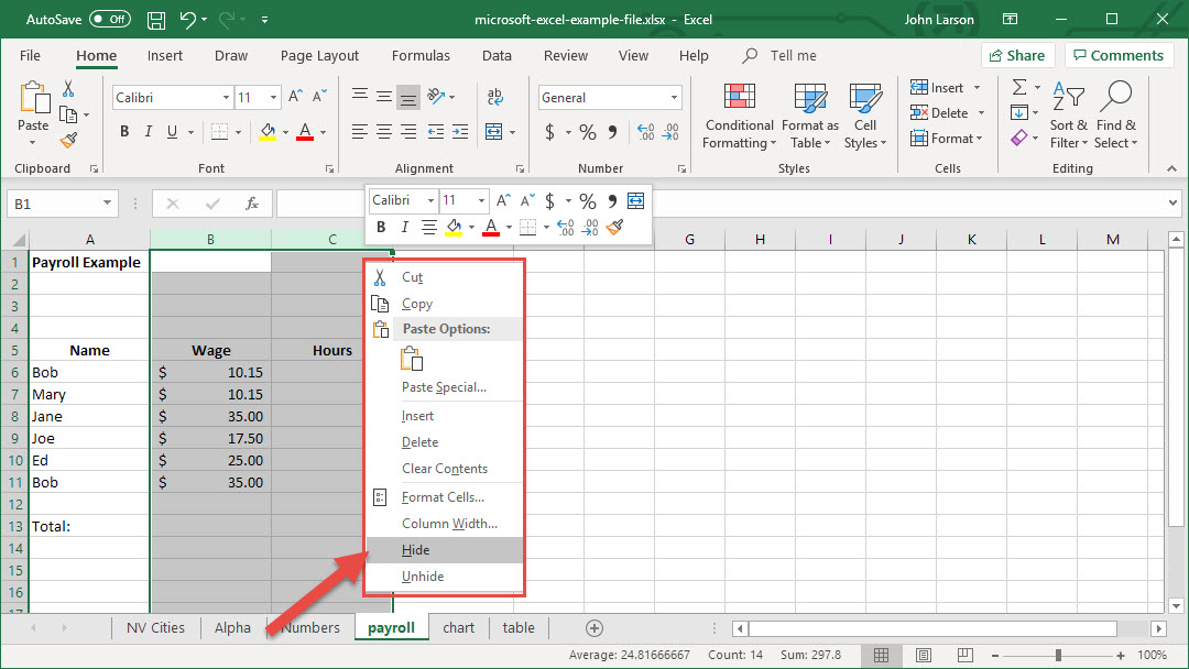 Hide or unhide columns in your spreadsheet to show just the data that you need to see or print.