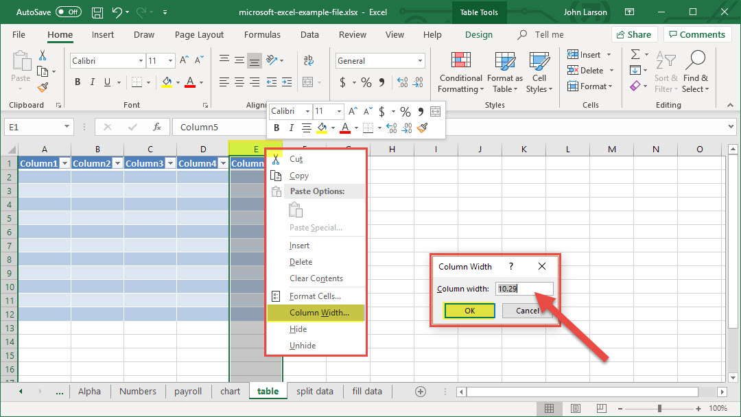 1. Select one or more columns, and then press Ctrl to select additional columns that aren’t adjacent.