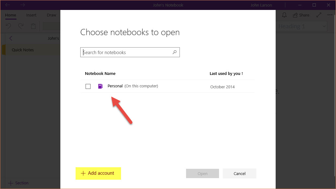 Don’t see the notebook you’re looking for? Click Add Account and then sign in with the account where your notebooks are stored.