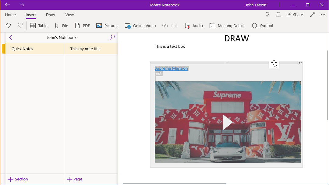 You can select the link to play the video back at its source or select the Play button on the embedded video and watch it right in your notes.