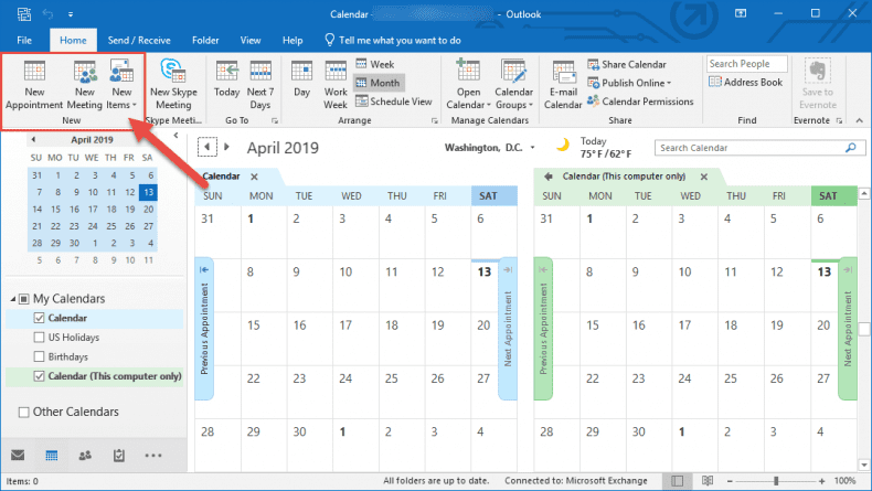 Create an appointment to let other Outlook users know when you’re free or busy, or make it a meeting and invite others.