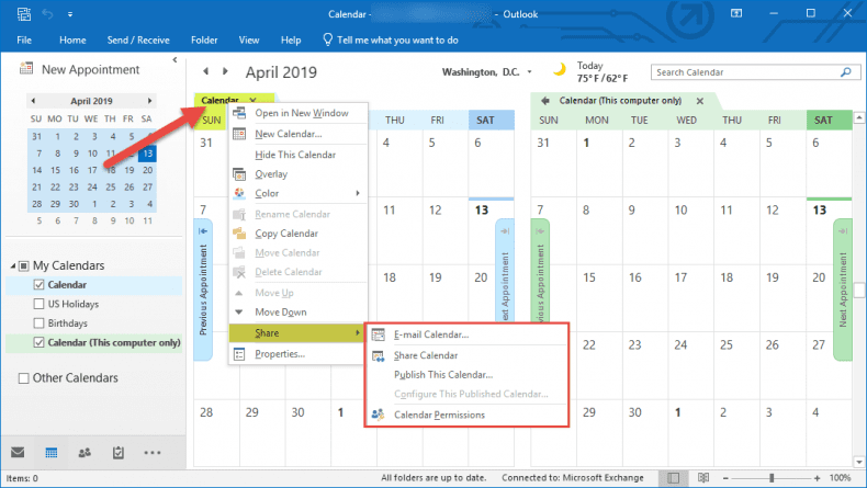 2. Select Calendar > Shared Calendars to view a shared calendar.