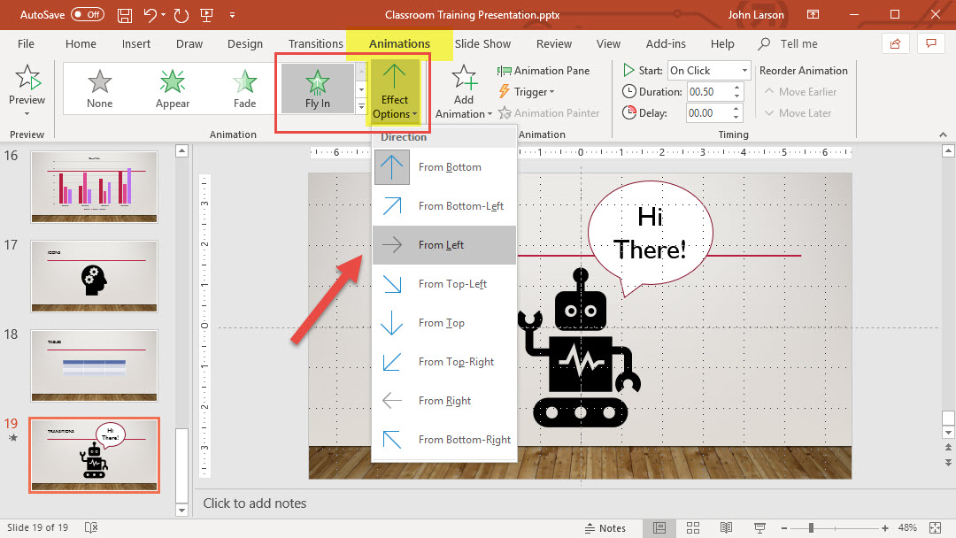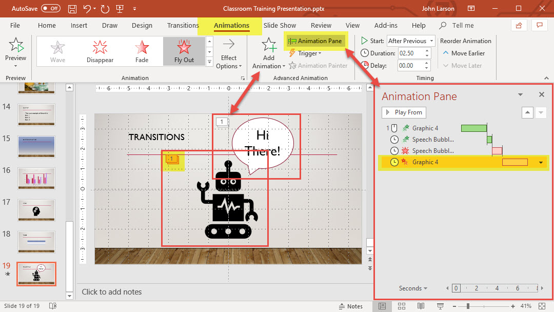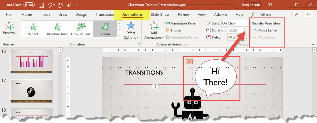- Move Earlier: Make an animation appear earlier in the sequence.