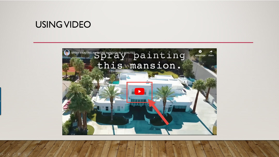 Because the video is stored on a web site, rather than in your presentation, you must be connected to the internet in order for the video to play successfully.