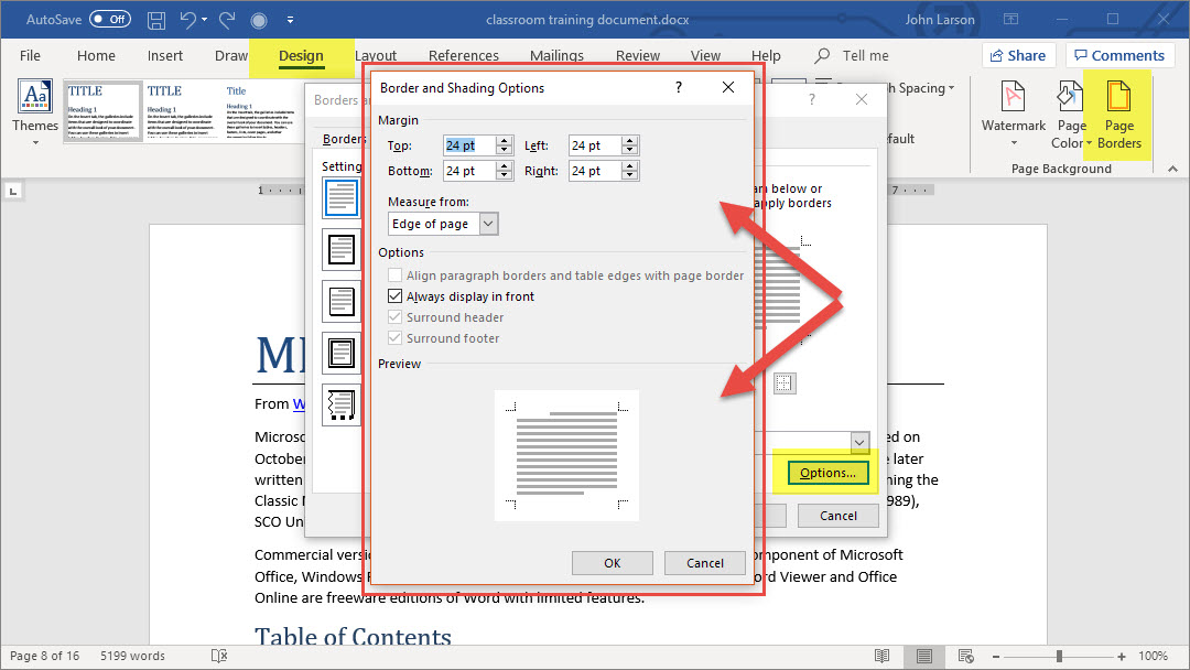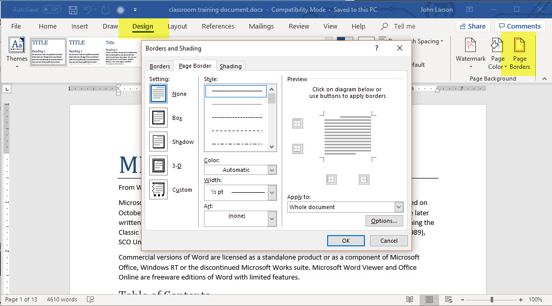 1. Select Design > Page Borders.