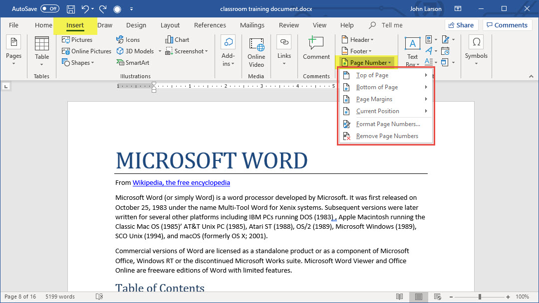 Insert Page Numbers