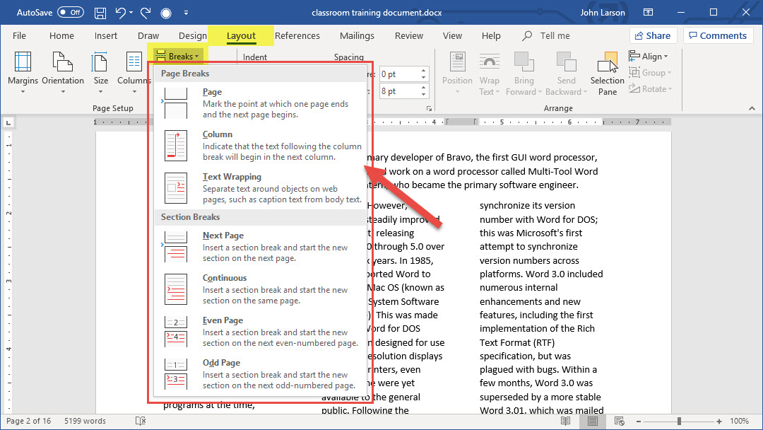 2. Click Layout > Breaks.
