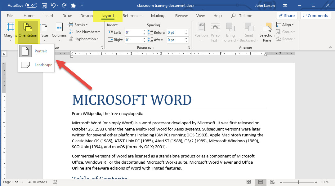2. Choose Portrait or Landscape.