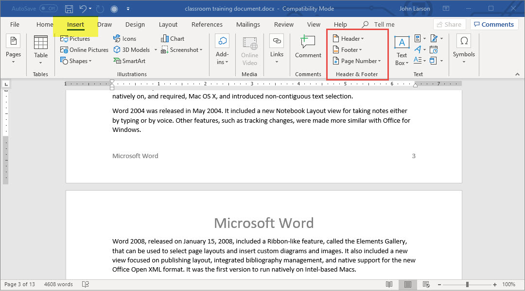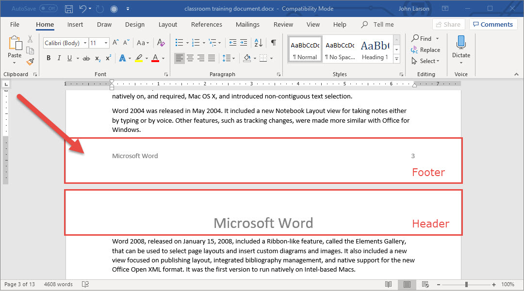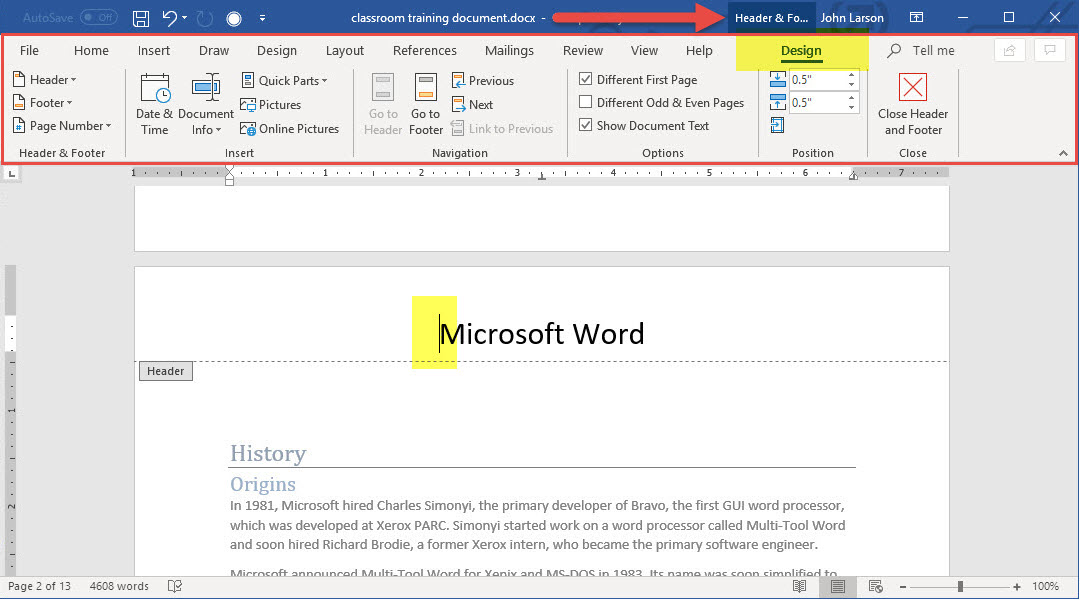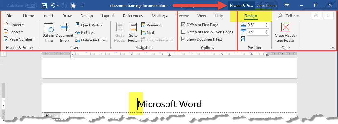 3. When you’re done, select Close Header and Footer.