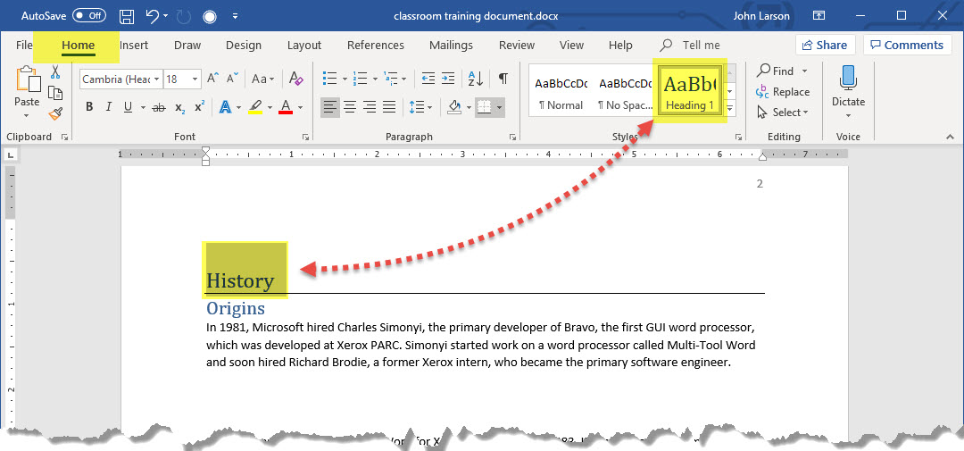 For each heading that you want in the table of contents, select the heading text, go to Home > Styles, and then choose Heading 1, 2, or 3.