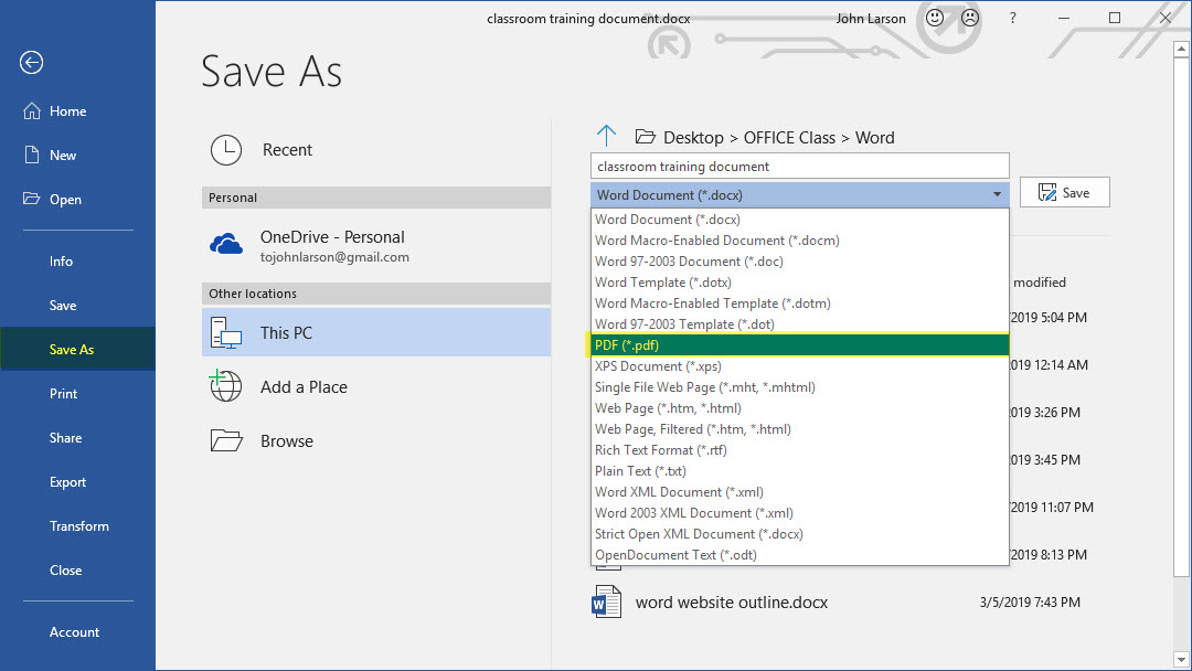 Save your document to OneDrive so you can get to it from anywhere – at work, at home, or on the go.